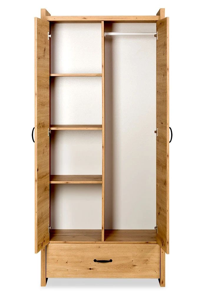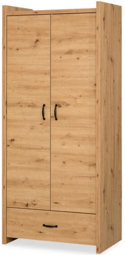 Deze prachtige 2-deurs garderobekast Sander geeft iedere babykamer een stoere look! De kast heeft meer dan genoeg opbergruimte. Deze kast heeft 2 deuren met een roede en 3 legplanken. Daarnaast heeft de kast onderin een grote lade waar je nog meer spullen voor je kleintje kwijt kan.