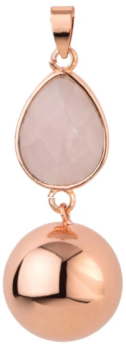 De Babylonia Bola (babybel) bevat een klein xylofoontje wat een tinkelend geluid voortbrengt bij iedere beweging. Deze roségoudkleurige Bola heeft een roze druppel en komt met een koordje om hem om je nek te hangen. Hij is te combineren met een ketting (niet bijgeleverd, los verkrijgbaar) en zal de aandacht trekken van je kindje én van iedereen in je omgeving. Het sieraad is handgemaakt in Mexico.
