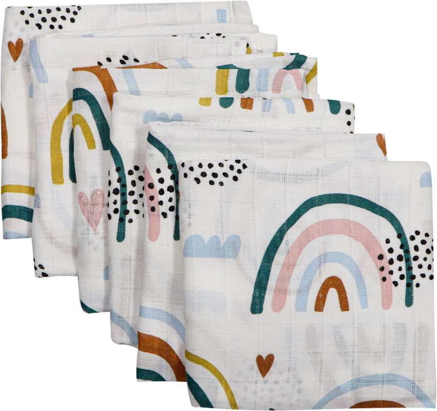De monddoekjes zijn 30 x 30 cm groot, de washandjes zijn 15 x 21 cm en de luiers zijn 70 x 70 cm. Deze set is gemaakt van 100% hydrofiel katoen. Ideaal voor thuis én onderweg! Wasbaar op 60ºC.