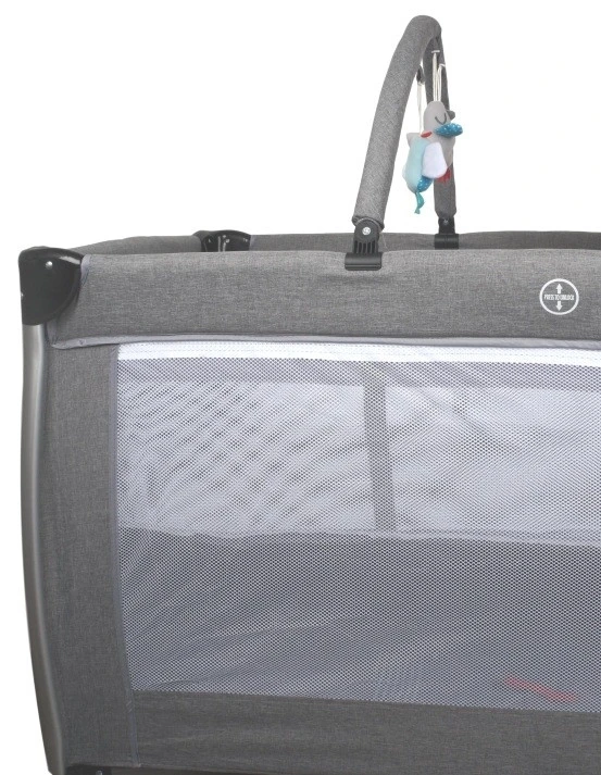 De vrolijke speelboog en het aankleedvlak maken het bedje echt compleet. Het aankleedvlak is stevig en voorzien van een zachte ondergrond. En moet hij even aan de kant, dan hang je hem met behulp van de haken over de rand van het bedje. De vrolijke speelboog heeft afneembare sterretjes en de speelboog zelf klik je ook eenvoudig op de randen van het campingbedje. De luxe aluminium poten maken het af.