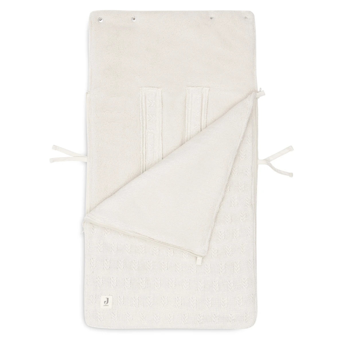 Deze comfortbag komt uit de Grain Knit collectie van Jollein en heeft een gebreid patroontje aan de buitenkant en zachte fleece aan de binnenkant. Daarnaast heeft de voetenzak een capuchon die je kan dicht maken door middel van drukknoopjes. Zo krijgt je kindje het niet koud tijdens de reis.
