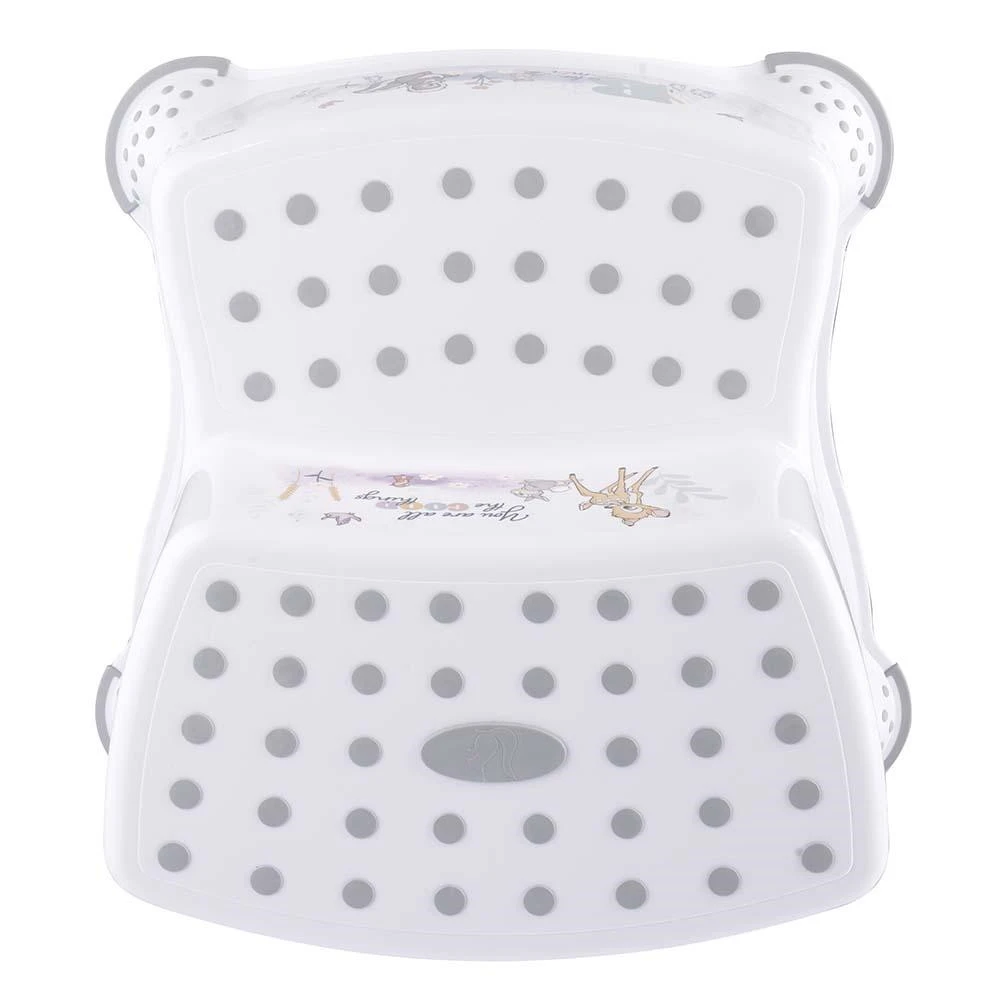Het opstapje heeft anti-slip rubbers in de voetjes, hierdoor staat het opstapje stevig op de grond. Zo kan je kindje veilig bij het toilet, de wastafel of een ander hoog voorwerp komen!
