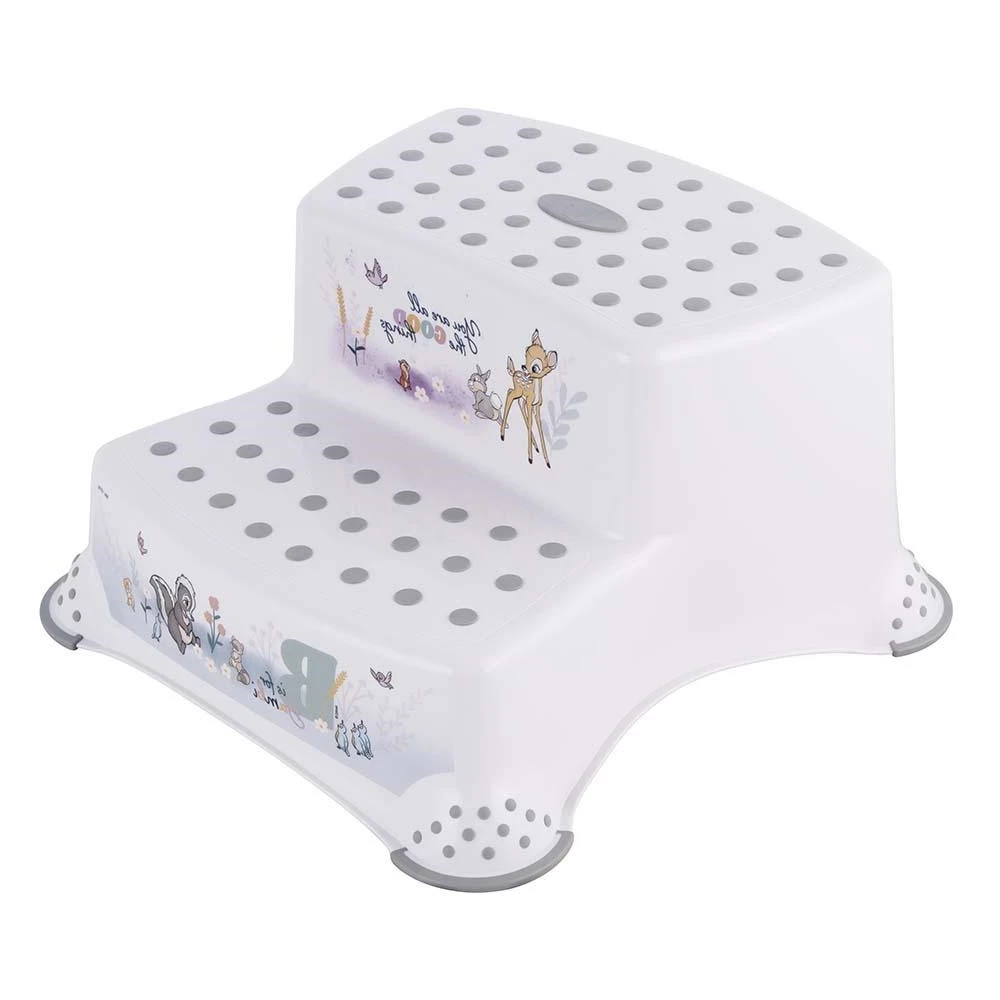 Het opstapje is wit van kleur en is voorzien van leuke afbeelding van het schattige disney figuurtje Bambi en haar vriendjes. De nieuwe technologie van overprint (IML) voorkomt dat de afbeelding vervaagt of loslaat.