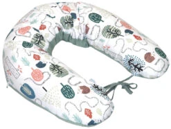 Het voedingskussen is voorzien van een afritsbare hoes die in de wasmachine op 40° gewassen kan worden. De lengte van het voedingskussen is 155 cm. Het voedingskussen kan aan twee kanten gebruikt worden: de leuke dierenprint of de uni stonegreen kleur.