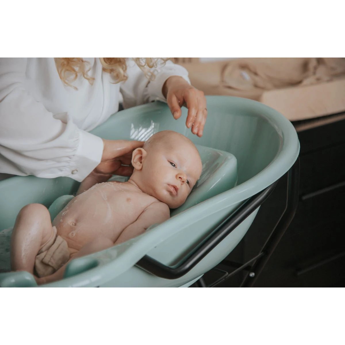 Het badje heeft een mooie vorm en is inclusief afvoer. Het badzitje kan gemakkelijk in het badje geplaatst worden door middel van zuignappen. De standaard is van metaal gemaakt met rubberen voetjes om de vloer te beschermen en is gemakkelijk in te klappen. Op het waskussen kun je je kindje verschonen en de luiers gooi je met gemak in de luieremmer! Kortom: deze badset is onmisbaar in de babykamer!
