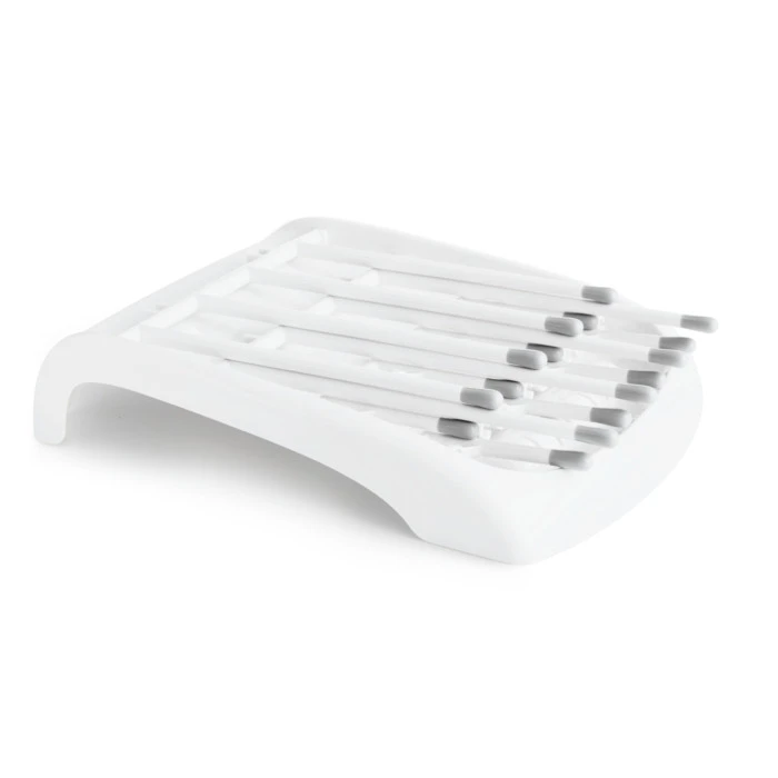 Een goed plekje vinden om alle flesjes te laten drogen is niet gemakkelijk. Met dit handige droogrek van Munchkin houd je het aanrecht vrij en kan je alles netjes en georganiseerd laten drogen. Het droogrek is ontworpen voor flessen, spenen, afsluitschijfjes, bekers, rietjes en kleppen. Dit droogrekje heeft afdruiptuiten in twee verschillende hoogten voor alle formaten flesjes en accessoires. Daarnaast hebben de afdruiptuiten zachte punten om krassen te voorkomen.