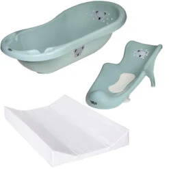 Met deze 3-delige Tryco badset heb je in één keer alles wat je nodig hebt om je kindje te laten badderen en te verschonen! Ideaal, want zo hoef je niet verder te zoeken. De Tryco 3-delige badset bevat een waskussen, badje en een badzitje. De spullen zijn van goede kwaliteit maar toch heel voordelig!